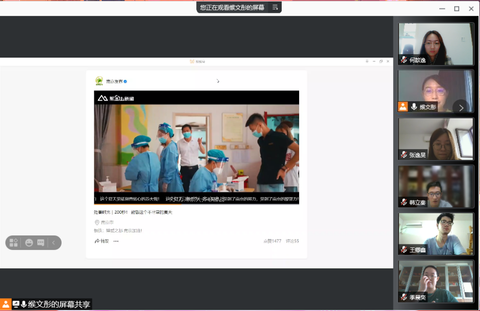 大会伊始,与会师生共同观看了微视频《致敬这个不寻常的夏天》,一起回顾了近一个月南京市民在党和国家领导下齐心协力、团结战"疫"的经过,也看到了一个个共产党员冲在防疫第一线,践行生命至上,举国同心,舍生忘死,尊重科学,命运与共的伟大抗疫精神。