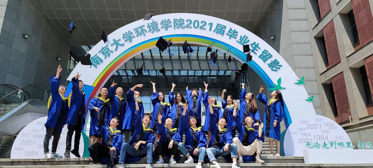 毕业仪式由2021届本科生代表带来的原创诗朗诵《"南"说再见》中推向高潮。我们从五湖四海而来,又即将奔赴天南海北;把所有的梦想,揉进南京的春秋冬夏;毕业不是终点,而是新生活、新奋斗的起点。但是无论走到哪,一生有你南大环院在你身边。