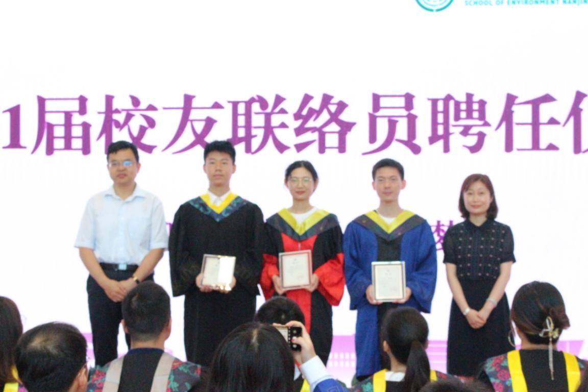 为有效加强毕业生与母校的联系与交流,环境学院党委书记刘建萍、环境校友会秘书长陆朝阳为2021届三位校友联络员朱博阳、廖宇星、王梦杰颁发了聘书。