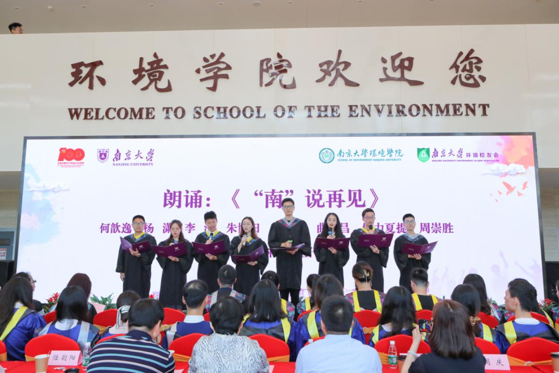 毕业仪式由2021届本科生代表带来的原创诗朗诵《"南"说再见》中推向高潮。我们从五湖四海而来,又即将奔赴天南海北;把所有的梦想,揉进南京的春秋冬夏;毕业不是终点,而是新生活、新奋斗的起点。但是无论走到哪,一生有你南大环院在你身边。